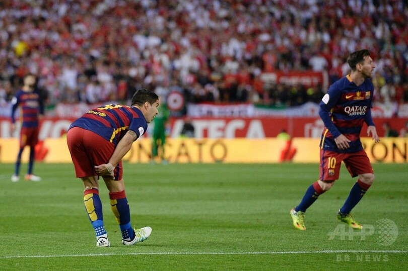【5月23日 AFP】(更新)FCバルセロナ(FC Barcelona)のルイス・スアレス(Luis Suarez)が22日、セビージャFC(Sevilla FC)と対戦したスペイン国王杯(Copa del Rey 2015-16)決勝で負傷し、涙を流しながらピッチを後にした。