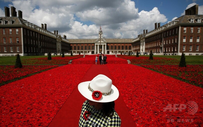 またこの日、戦没者を追悼するかぎ針編みで作られた約30万個の赤いポピーで飾られた庭園や、紫、ピンク、オレンジ色の約1万本の花を使って作られた女王の肖像も披露された。