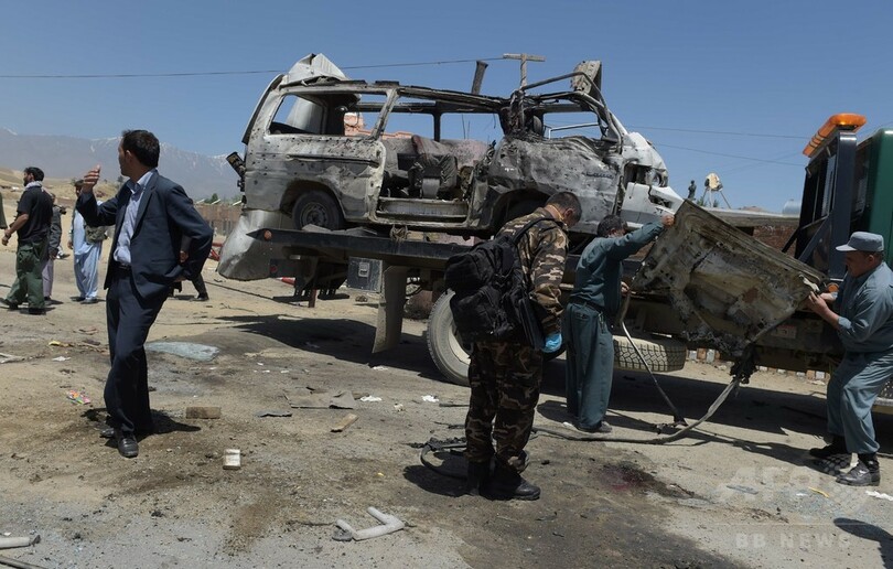 【5月25日 AFP】(写真追加)アフガニスタン内務省によると、首都カブール(Kabul)近郊で25日、裁判所の職員らを乗せた車両に徒歩で近づいてきた男が爆発物を爆発させ、10人が死亡した。