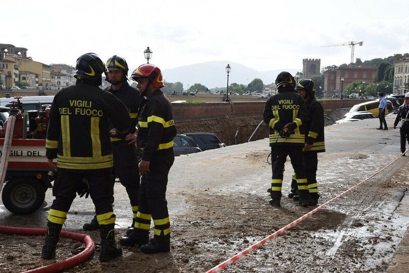 陥没が発生したのは、14世紀に建造された世界的に名高いベッキオ橋(Ponte Vecchio)とグラツィエ橋(Ponte alle Grazie)の間。消防当局によると水道管の破裂が原因だという。また、地元当局者によるとけが人は出ていない。(c)AFP