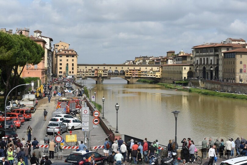 陥没が発生したのは、14世紀に建造された世界的に名高いベッキオ橋(Ponte Vecchio)とグラツィエ橋(Ponte alle Grazie)の間。消防当局によると水道管の破裂が原因だという。また、地元当局者によるとけが人は出ていない。(c)AFP