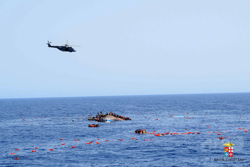 移民船転覆の衝撃的瞬間、イタリア海軍が撮影