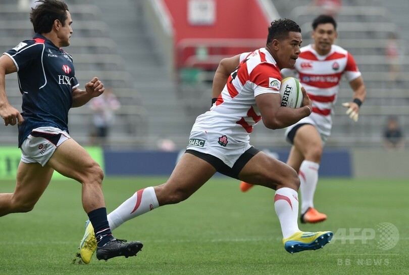 前半終了前に中村亮土(Ryoto Nakamura)のキックで追加点を挙げた日本は、後半に入ると一方的な展開に持ち込み、再開直後には山本浩輝(Hiroki Yamamoto)がトライを記録。その後は石橋とモエアキオラがそれぞれこの日2つめのトライを決めるなど、香港を突き放した。(c)AFP
