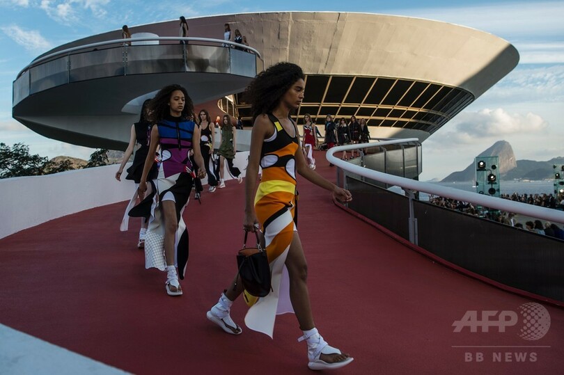 【5月30日 AFP】ブラジル・リオデジャネイロのニテロイ現代美術館(Niterói Contemporary Art Museum)で28日、ニコラ・ジェスキエール(Nicolas Ghesquiere)が手がける「ルイ・ヴィトン(Louis Vuitton)」が17年クルーズ・コレクションを発表した。(c)AFP