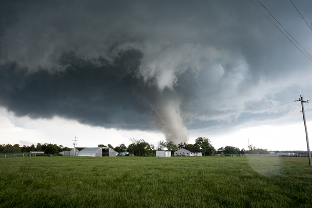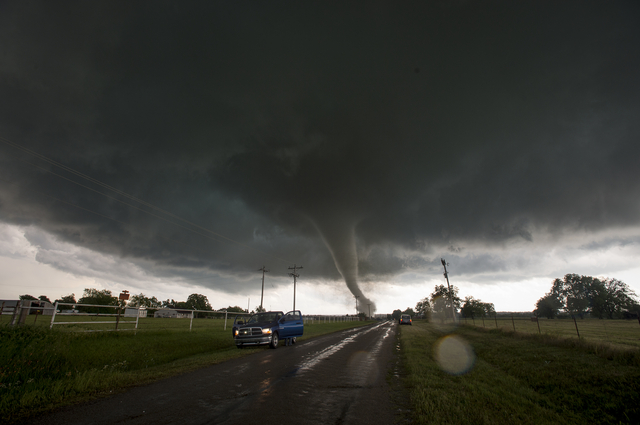 その竜巻が消えてから2分後、それほど遠くない場所で別の竜巻が発生したとの連絡を受けた。直径1.6キロほどもある巨大な竜巻だった。稲光があちこちで光った。まるで神様が地球を吸い込むために巨大な掃除機を送ってきたみたいだった。雨が降りしきっていたので、私たちがいた場所からはほとんど見えず、私は写真を撮ることができなかったが、友人は素晴らしいショットを何枚か撮った。