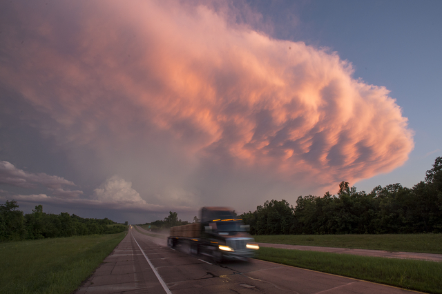 結局、竜巻を見るためには車を走らせなければならなかった。走って、走って、また走って。私が参加したツアーには、バン3台に18人が乗っていたが、北はワイオミング(Wyoming)州まで、南はテキサス(Texas)州とメキシコの国境沿いまで走り続けた。ツアー参加者の一人が走行距離を測った。私たちは計5183キロ走り、バンの中で77時間45分過ごした。