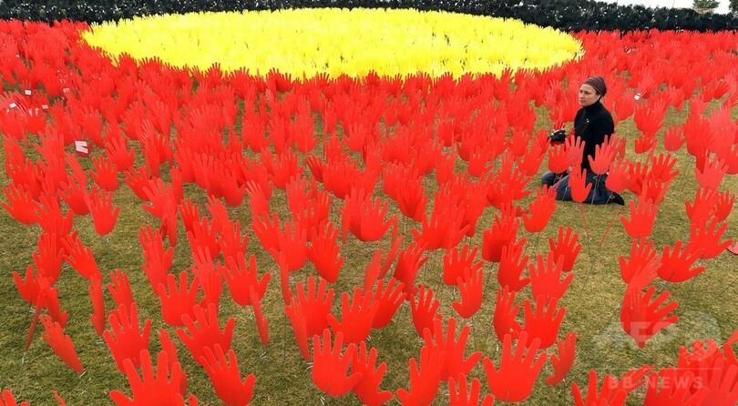 【6月2日 AFP】赤、黄、黒の「手」を無数に並べてオーストラリアの先住民アボリジニの旗を形づくった巨大インスタレーション作品「手の海(Sea of Hands)」が、豪シドニー(Sydney)に登場した。