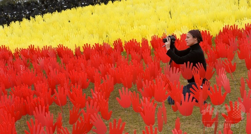 【6月2日 AFP】赤、黄、黒の「手」を無数に並べてオーストラリアの先住民アボリジニの旗を形づくった巨大インスタレーション作品「手の海(Sea of Hands)」が、豪シドニー(Sydney)に登場した。
