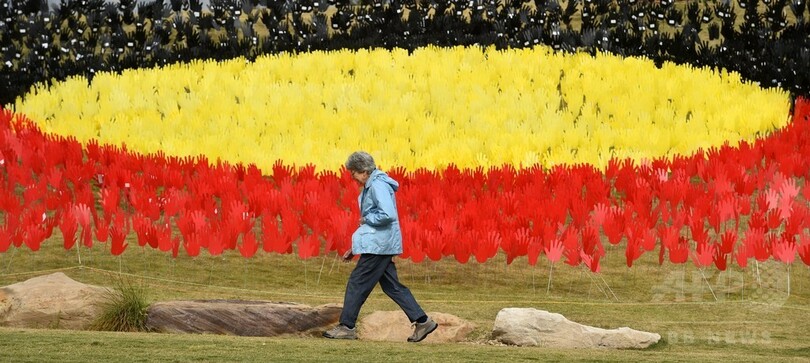【6月2日 AFP】赤、黄、黒の「手」を無数に並べてオーストラリアの先住民アボリジニの旗を形づくった巨大インスタレーション作品「手の海(Sea of Hands)」が、豪シドニー(Sydney)に登場した。