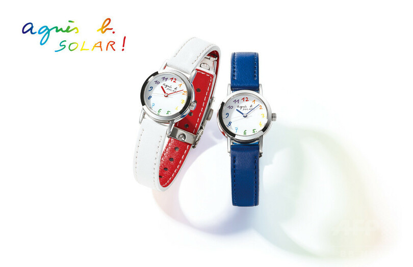 光を取り込むソーラーパネルが内蔵された白いダイヤルには、手書き数字を7色のレインボーカラーでインデックスにあしらい、同じく手書きのロゴ“agnès b. SOLAR!”を配置。すっきりしたフォルムのケースには、夏らしい涼やかなカラーのバンドをコーディネートした。白いバンドのモデルは裏に赤をきかせたデザイン。一方ブルーのバンドは裏に同色の濃淡カラーを合わせ、涼やかな印象を演出する。