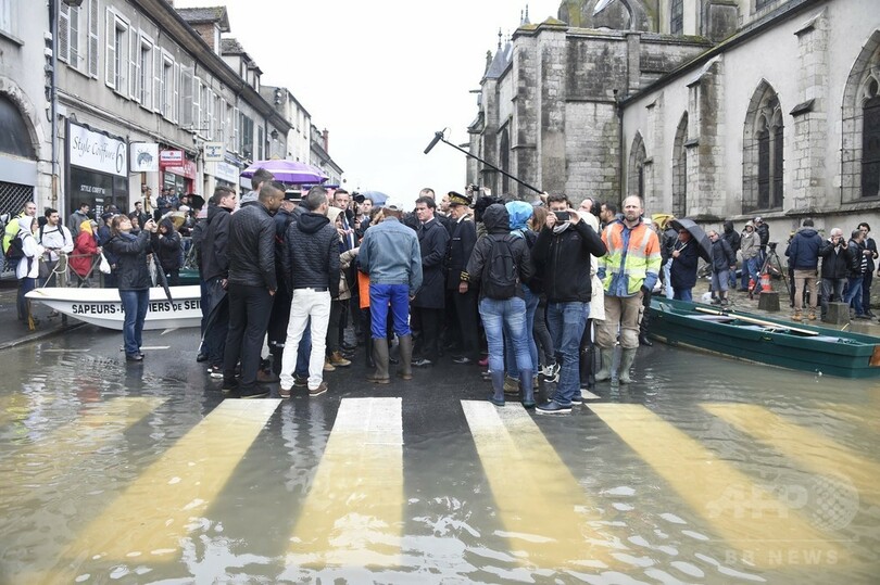 フランスのマニュエル・バルス(Manuel Valls)首相は同日、パリの南約80キロの、ロワン(Loing)川の氾濫で住民が避難を余儀なくされたヌムール(Nemours)を視察した。(c)AFP