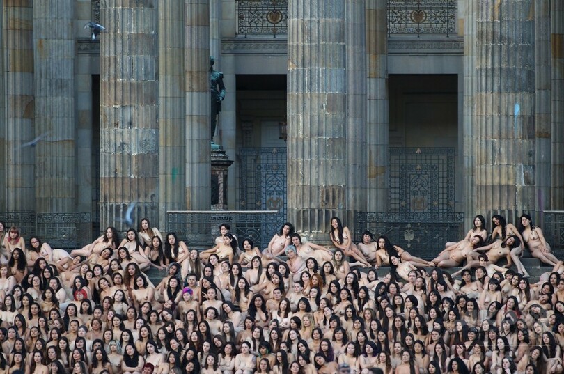 【6月6日 AFP】南米コロンビアの首都ボゴタ(Bogota)のボリバル広場(Bolivar Square)で5日、集団ヌード写真で知られる米写真家のスペンサー・チュニック(Spencer Tunick)氏による撮影が行われた。撮影には6000人を超えるコロンビア人が参加し、広場は裸の人たちで埋め尽くされた。