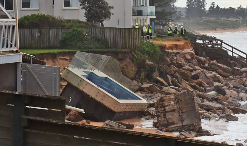 ニューサウスウェールズ(New South Wales)州の沿海部では洪水が発生。高波などで海岸が侵食される現象などもみられ、海辺の民家では庭のプールが崩落した。