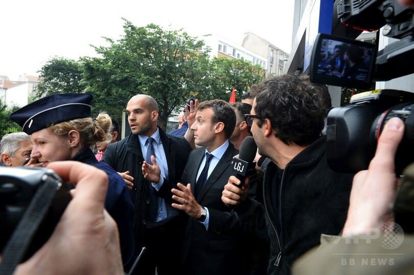 しかしパリ(Paris)郊外で行われた行事に足を運んだマクロン氏は、労働法改革派であることから左派をいら立たせ、怒った労組の活動家らは同氏に対し「失せろ」と叫び、生卵を投げつけた。