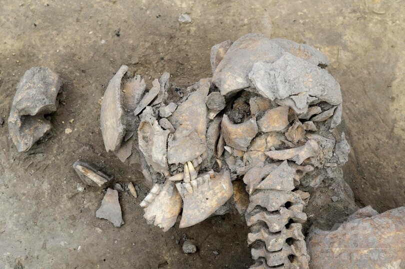 仏国立予防考古学研究所(INRAP)のチームは記者団に対し、仏東部ストラスブール(Strasbourg)郊外にある、穀物や他の食物を保存するために使われていた古代の「サイロ」300個のうちの1つで、10人の人骨が発見されたと述べた。