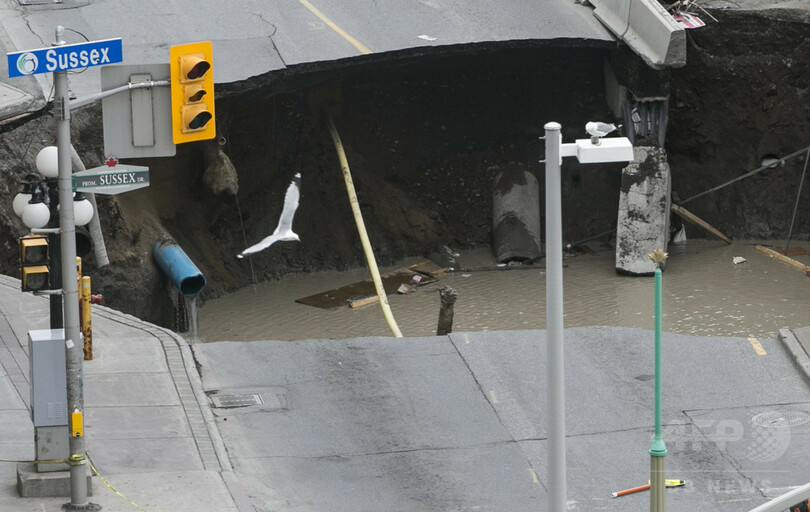 カナダ首都中心部に巨大陥没穴 周辺施設に避難措置
