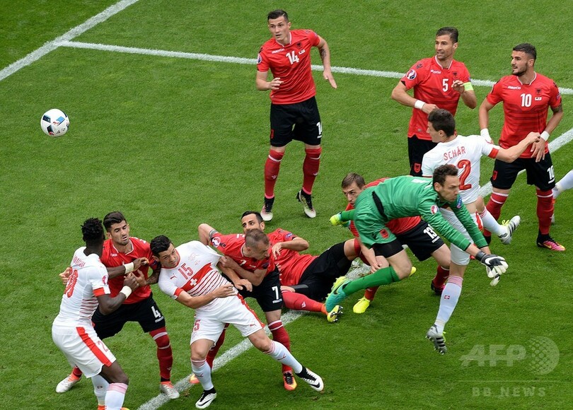 【6月12日 AFP】サッカー欧州選手権2016(UEFA Euro 2016)は11日、グループAの試合が行われ、スイスはファビアン・シェル(Fabian Schaer)のゴールが決勝点となり、退場者を出したアルバニアに1-0で勝利した。