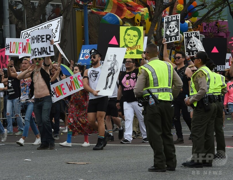ロサンゼルスのゲイプライドパレードには、フロリダ州の銃撃事件が発生する前の予想として、約40万人の参加が見込まれていた。(c)AFP