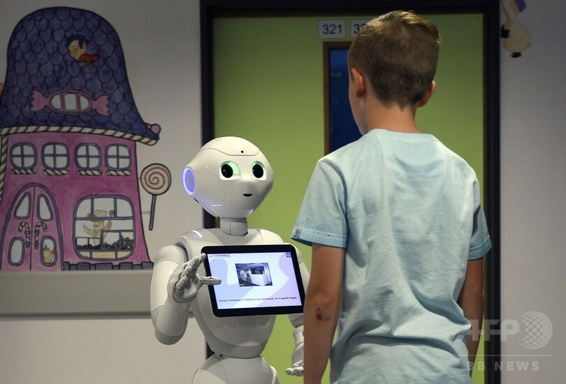 導入に約3万ユーロ(約360万円)するというPepperだが、リエージュの病院ではしばらく受付の役割に徹するという。しかしロボットの知能にあたるソフトウエアの開発を担当した企業ゾラ・ボッツ(Zora Bots)によると、オステンドの病院では患者を目的地まで連れていくこともできるという。(c)AFP