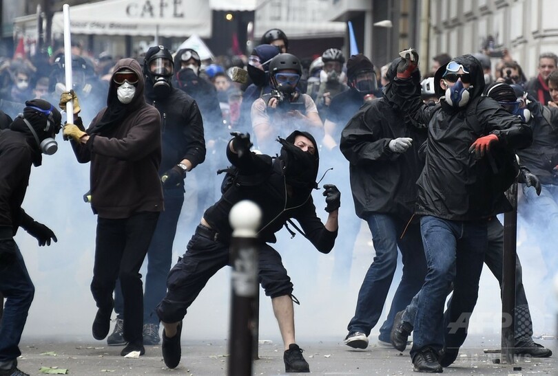 パリの労働法デモ、警察と衝突で40人負傷 エッフェル塔も閉鎖