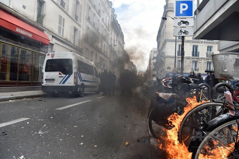 パリの労働法デモ、警察と衝突で40人負傷 エッフェル塔も閉鎖