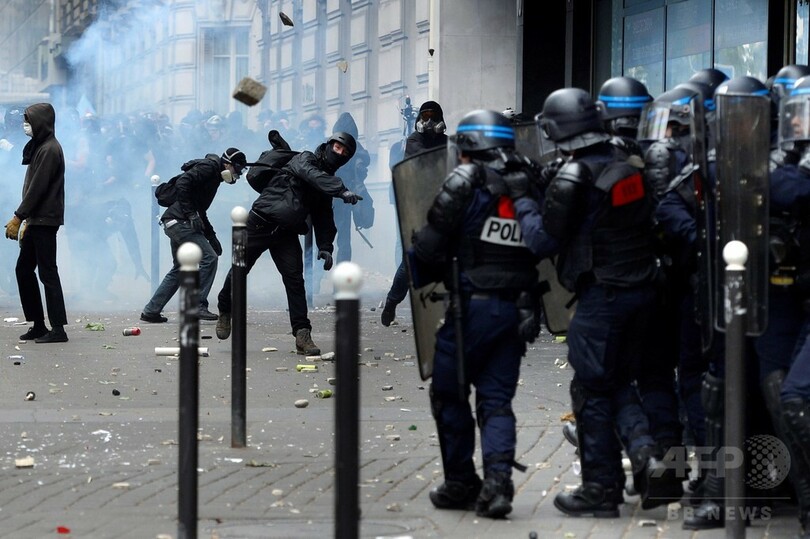パリの労働法デモ、警察と衝突で40人負傷 エッフェル塔も閉鎖