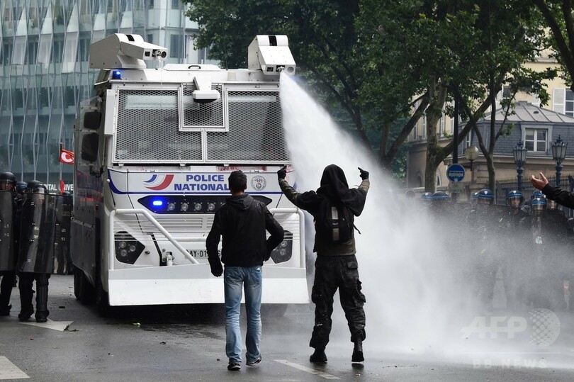パリの労働法デモ、警察と衝突で40人負傷 エッフェル塔も閉鎖