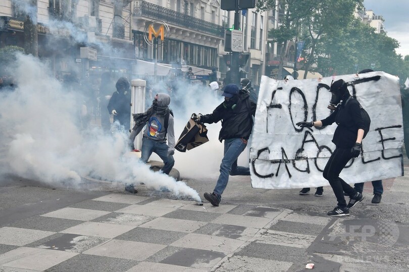 パリの労働法デモ、警察と衝突で40人負傷 エッフェル塔も閉鎖