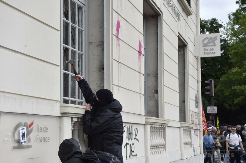 パリの労働法デモ、警察と衝突で40人負傷 エッフェル塔も閉鎖