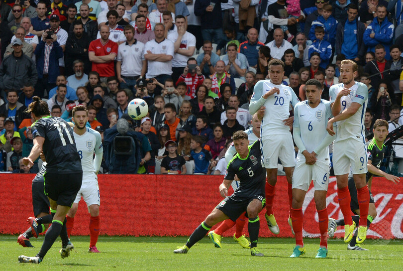 前半42分、ギャレス・ベイル(Gareth Bale)がイングランドのGKジョー・ハート(Joe Hart)を破って距離のある所からFKを決め、クリス・コールマン(Chris Coleman)監督率いるウェールズは2-1で勝利したスロバキア戦と同様に先制点を挙げた。