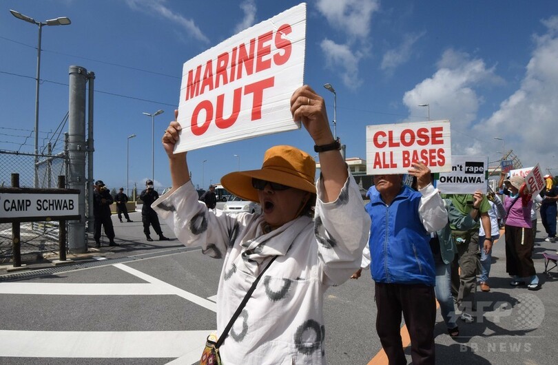 19日には在沖縄米軍の存在や米軍関係者による犯罪に抗議する県民大会が予定されている。(c)AFP