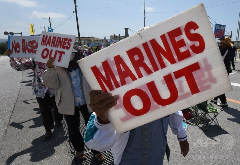 19日には在沖縄米軍の存在や米軍関係者による犯罪に抗議する県民大会が予定されている。(c)AFP