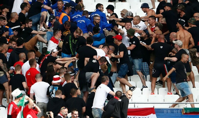目撃したAFPの記者によると、ハンガリーのサポーターがほかのグループと合流するためにフェンスをよじ登り、大会関係者と衝突した。