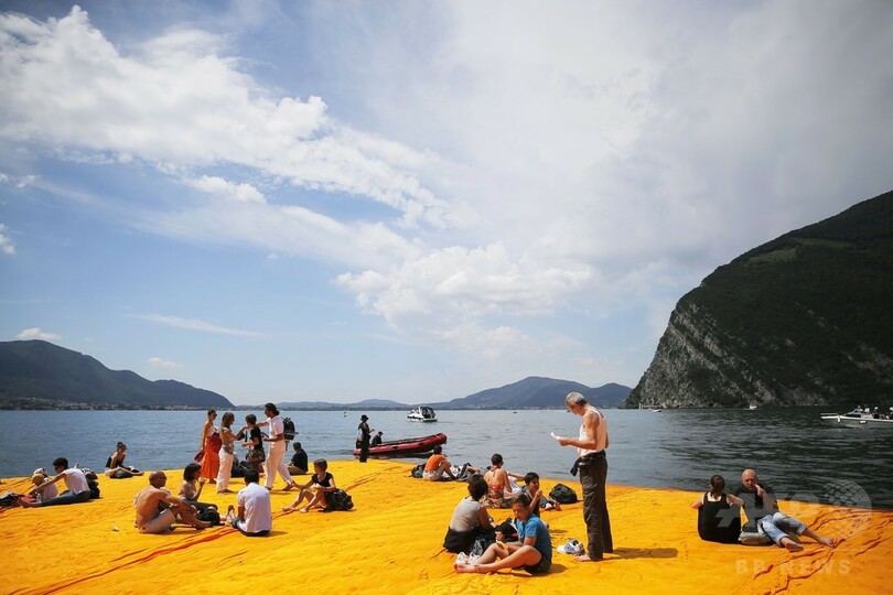 【6月19日 AFP】イタリア・ミラノ北東に位置するイゼーオ湖(Lake Iseo)で18日、アーティスト「クリスト・アンド・ジャンヌクロード(Christo and Jeanne-Claude)」が手掛けた巨大インスタレーション作品「The Floating Piers」(浮かぶ桟橋)が一般公開された。「湖上を歩く」チャンスを逃すまいと大勢が来場してその上を歩いた。