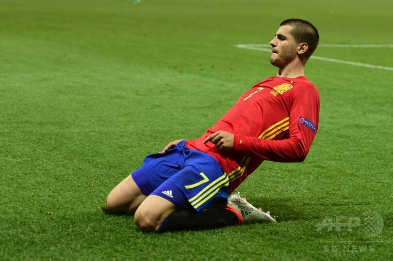 スペイン代表では、モラタは12試合に出場。現在出場中の欧州選手権2016(UEFA Euro 2016)ではトルコ戦で2得点、21日のクロアチア戦で1得点を挙げている。(c)AFP