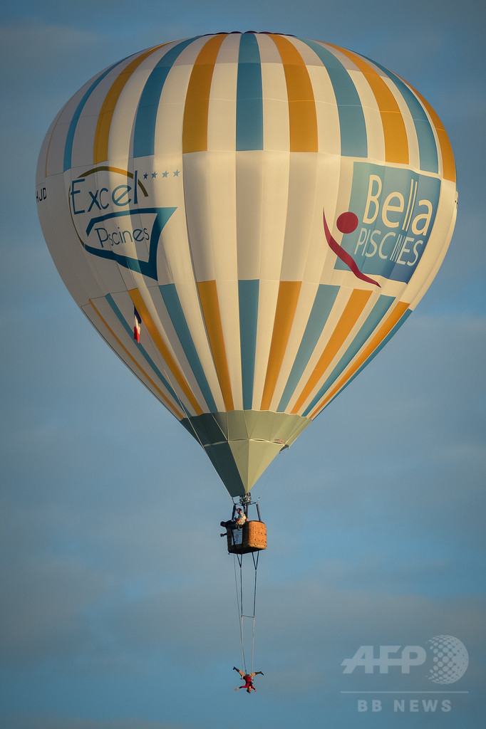 絶技、熱気球にぶら下がって「空中ブランコ」 仏