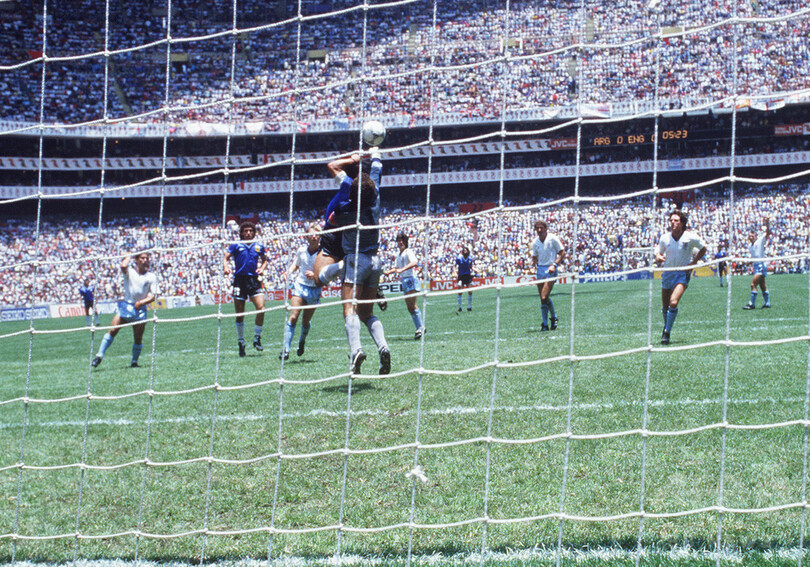 1986年の6月22日、メキシコW杯準々決勝のアルゼンチン対イングランド戦で、マラドーナ氏は2得点を記録し、アルゼンチンが2-1で勝利。この試合では永遠に語り継がれるであろう2つの出来事があった。マラドーナ氏の5人抜きドリブルからの追加点と、マラドーナ氏がシルトン氏の頭上に拳を伸ばしてボールを突き、ゴールへ押し込んだ先制点の場面だ。