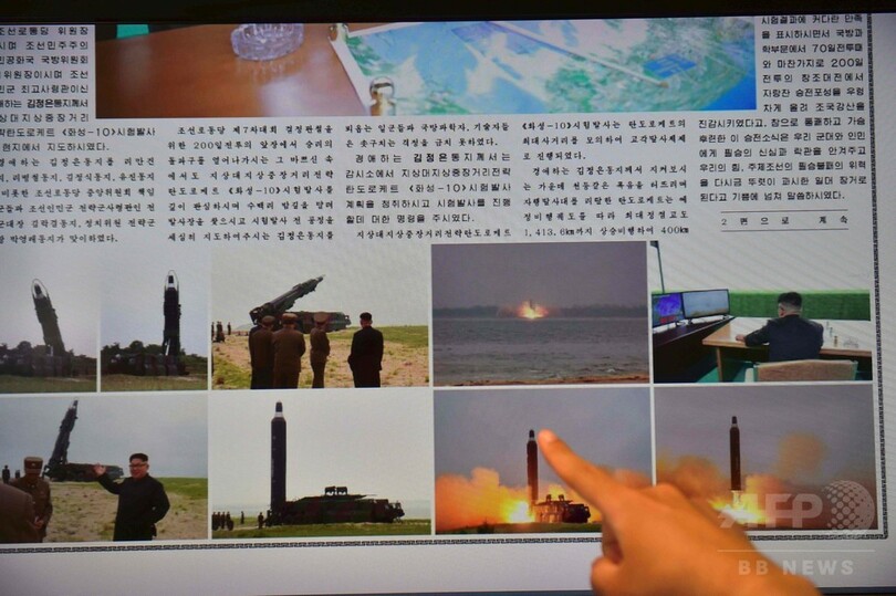 また、23日付の朝鮮労働党機関紙「労働新聞(Rodong Sinmun)」は、ミサイル発射の様子や発射「成功」を喜ぶ金氏の写真を1面に掲載した。