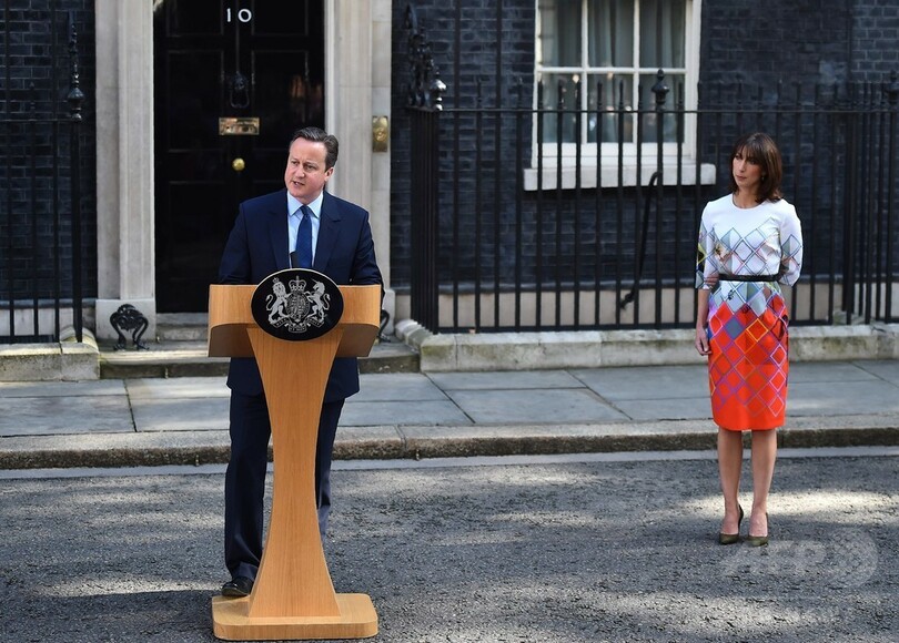 【6月24日 AFP】英国のデービッド・キャメロン(David Cameron)首相は24日、同国の欧州連合(EU)離脱の是非を問う国民投票で離脱派が勝利した結果を受け、辞任する意向を表明した。