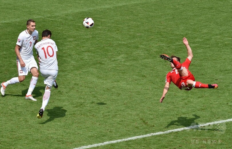 ポーランドはヤクブ・ブワシチコフスキ(Jakub Blaszczykowski)がグループ第3戦に続き得点を記録し、前半を1-0で折り返したが、スイスは後半に入るとシェルダン・シャキリ(Xherdan Shaqiri)が見事なバイシクルを決めて同点に追いついた。