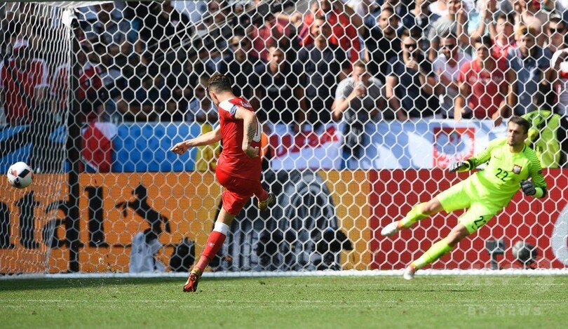 【6月26日 AFP】サッカー欧州選手権2016(UEFA Euro 2016)は25日、決勝トーナメント1回戦の試合が行われ、ポーランドは1-1で迎えたスイスとのPK戦を5-4で制し、準々決勝一番乗りを果たした。
