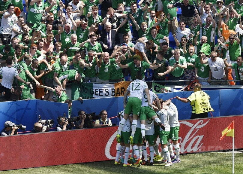 【6月27日 AFP】サッカー欧州選手権2016(UEFA Euro 2016)は26日、決勝トーナメント1回戦の試合が行われ、フランスはアントワーヌ・グリーズマン(Antoine Griezmann)が2得点を挙げて2-1でアイルランドから逆転勝利を収め、8強入りを果たした。