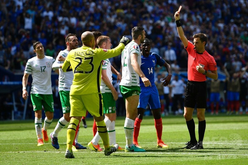 アイルランドは後半21分、シェーン・ダフィー(Shane Duffy)がゴール前に抜け出したグリーズマンを倒したことで退場となり、残りの約25分を10人で戦うことを余儀なくされた。