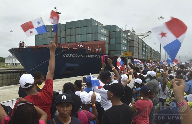 拡張パナマ運河で開通式典、中国貨物船が通航第1号に