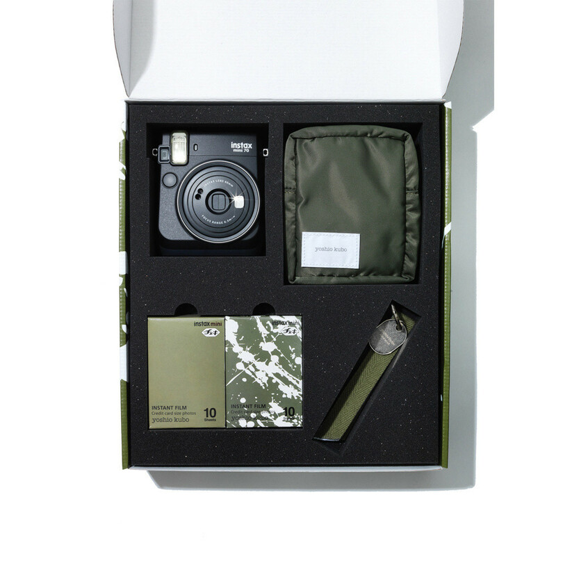 本コラボレーションには、「ファセッタズム(FACETASM)」「ワコマリア(WACKO MARIA)」「ジョンローレンスサリバン(JOHN LAWRENCE SULLIVAN)」「リトゥン バイ(written by)」「ヨシオ クボ(yoshio kubo)」「ディーティーティーケー(D.TT.K)」の6ブランドが参加。「instax mini 70」または「instax mini 90」どちらかの本体に、オリジナルデザインのキャリングケース、キーホルダーもしくはストラップ、フィルムを付属し、それぞれユニークなパッケージボックスに詰め合わせた。