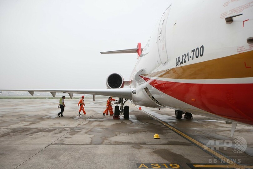 「ARJ21」は「21世紀の進歩的なリージョナルジェット(Advanced Regional Jet for the 21st century)」の意。14年越しのプロジェクトで開発された。(c)AFP