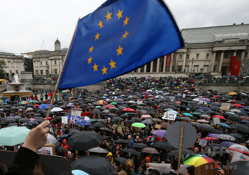 悲嘆に暮れるロンドンっ子、EU離脱に抗議のデモ