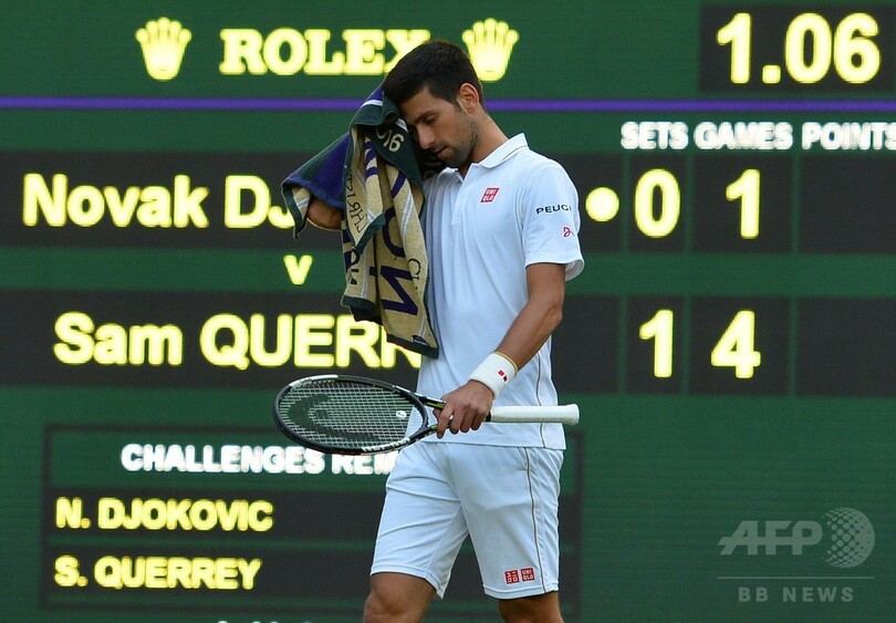 【7月2日 AFP】テニス、ウィンブルドン選手権(The Championships Wimbledon 2016)は1日、男子シングルス3回戦が行われ、大会連覇を目指す第1シードのノバク・ジョコビッチ(Novak Djokovic、セルビア)が6-7、1-6で第28シードのサム・キュエリー(Sam Querrey、米国)に追い込まれたところで、試合は降雨により順延となった。