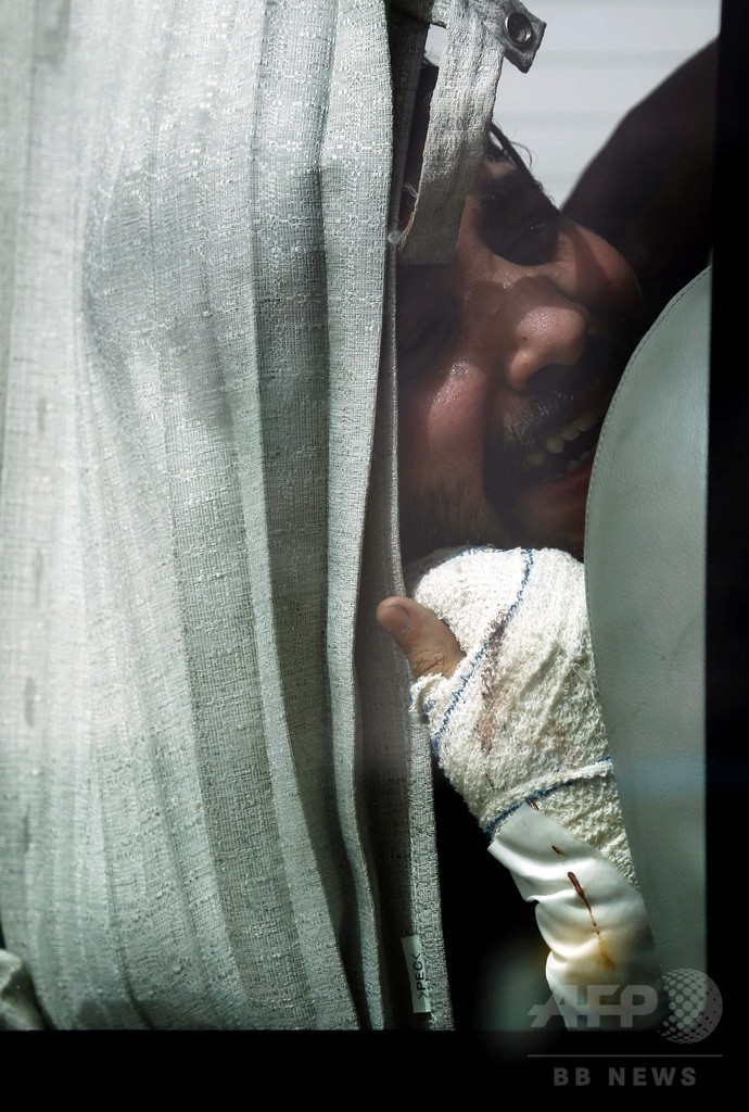 現場にいた人の話によると、事件発生当時、高い建物の屋根から飛び降りた人も多く、何人かは足の骨を折るなどしているという。また、冷蔵庫のなかに隠れていた3人が消火活動終了後に助け出された。(c)AFP/Ammar Karim