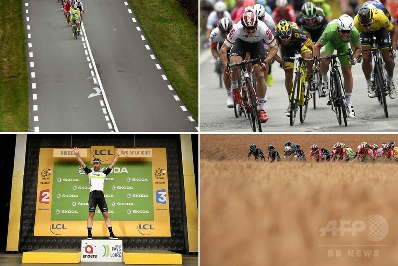 【7月5日 AFP】ツール・ド・フランス(2016 Tour de France)は4日、第3ステージ(グランヴィルからアンジェ、223.5キロメートル)が行われ、ディメンションデータ(Dimension Data)のマーク・カヴェンディッシュ(Mark Cavendish、英国)が僅差でロット・ソウダル(Lotto Soudal)のアンドレ・グライペル(Andre Greipel、ドイツ)をかわし、ステージ優勝を果たした。